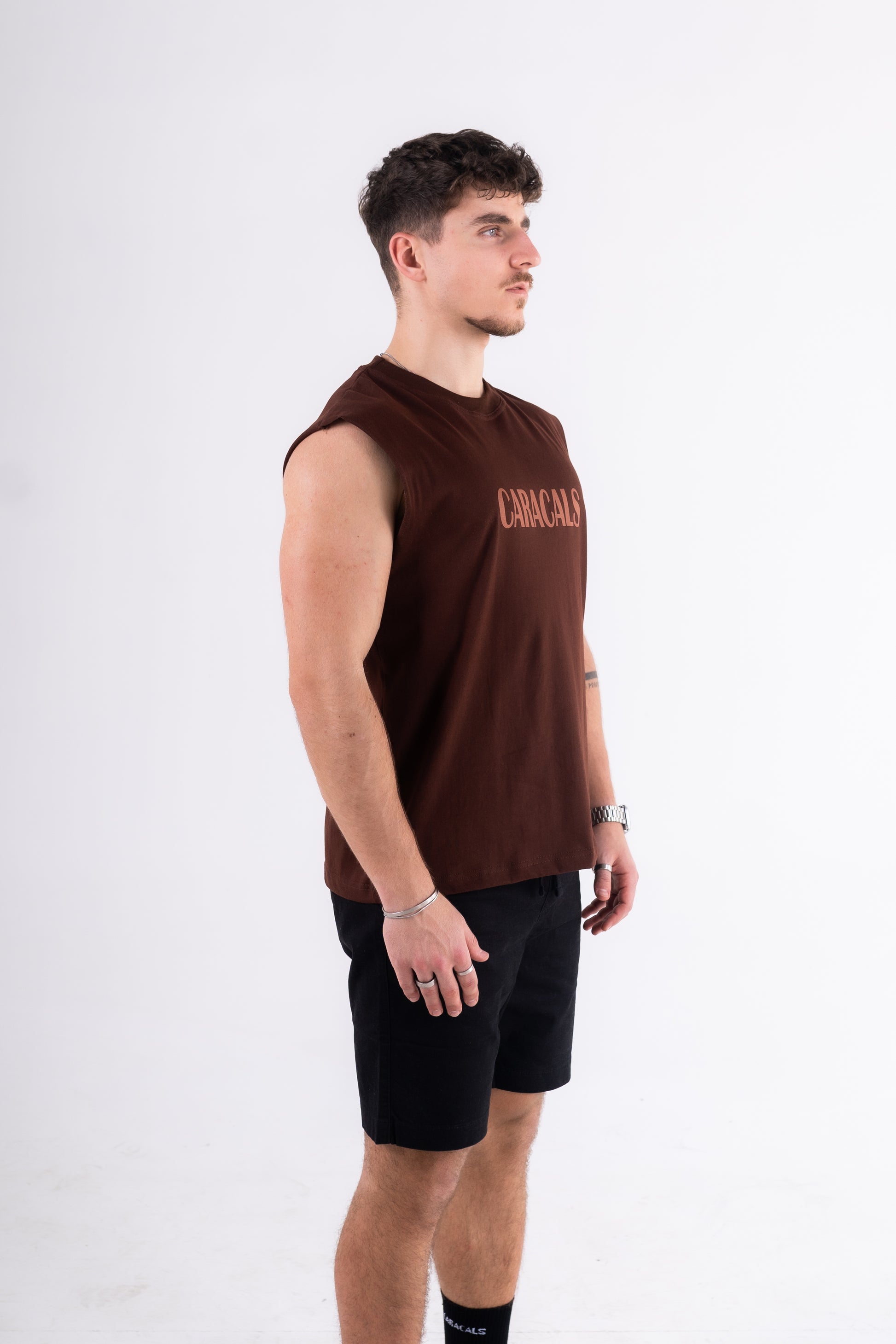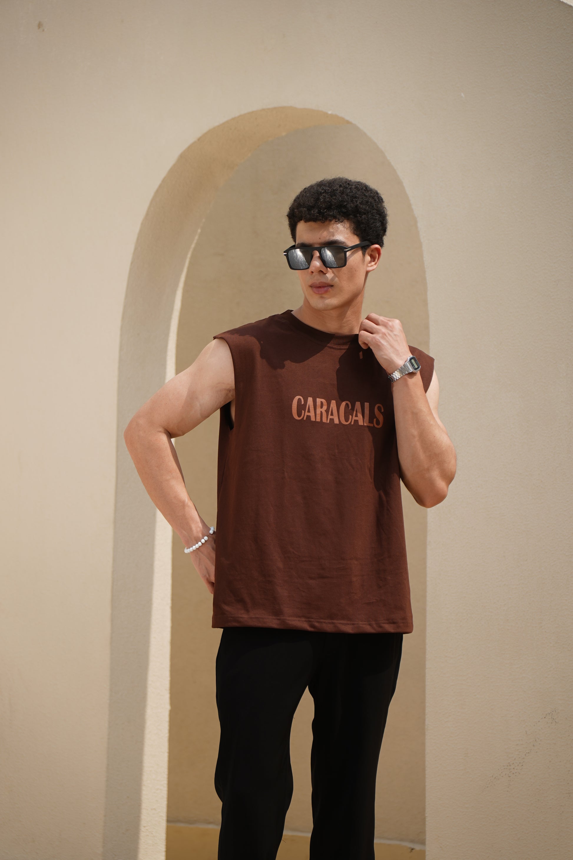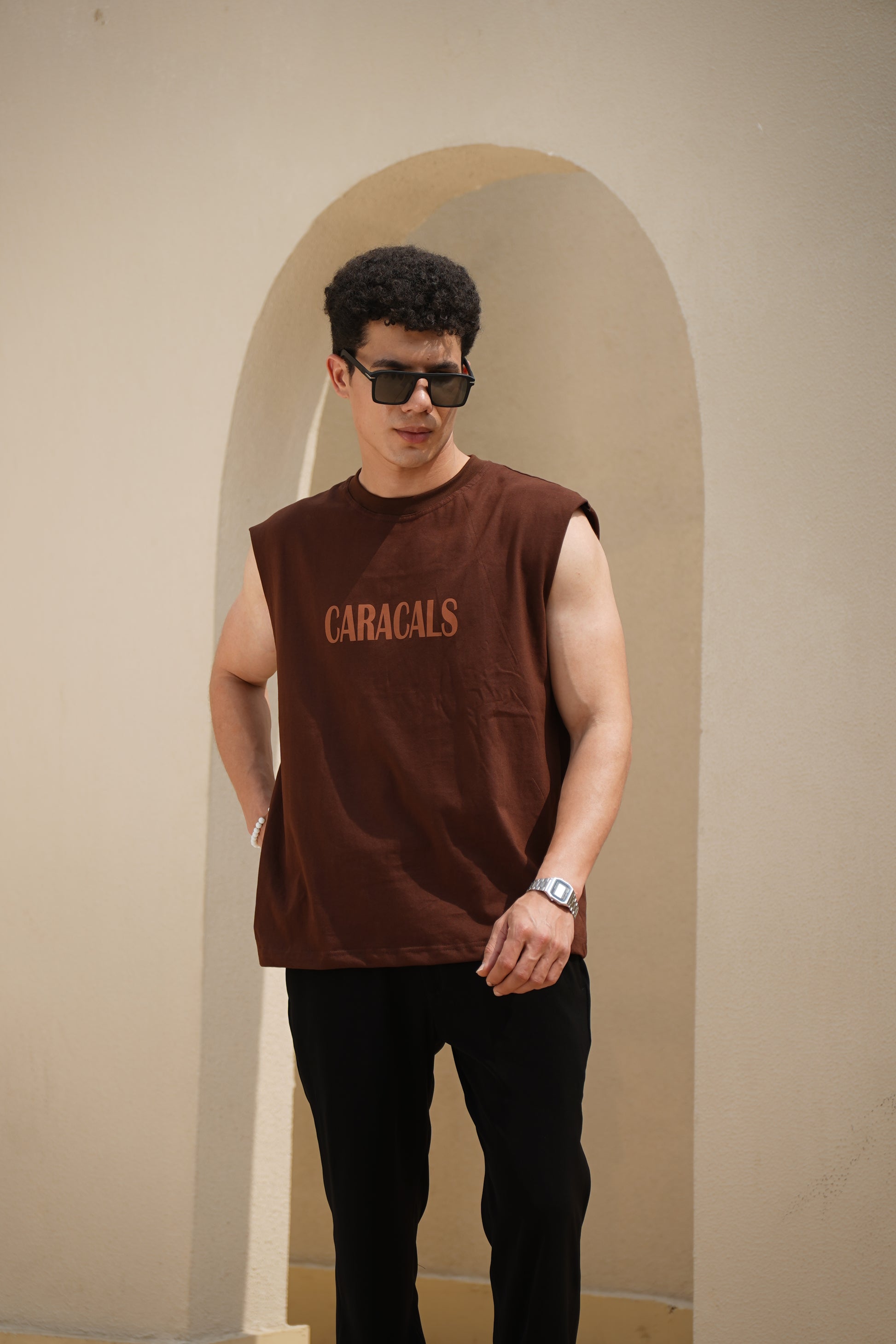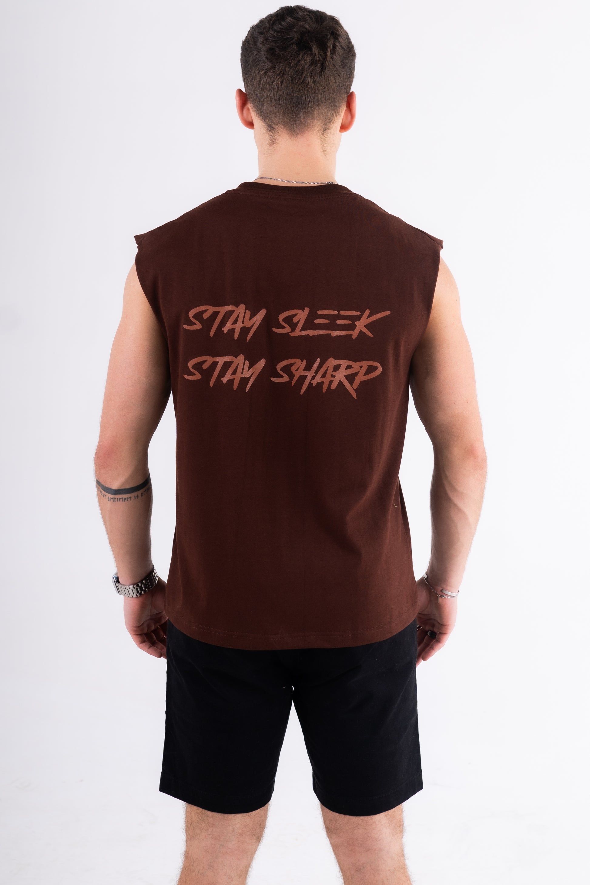 The Sando Half Sleeves in rich coffee color feature a bold screen print on both the front and back, offering a striking look with a stylish and comfortable fit.