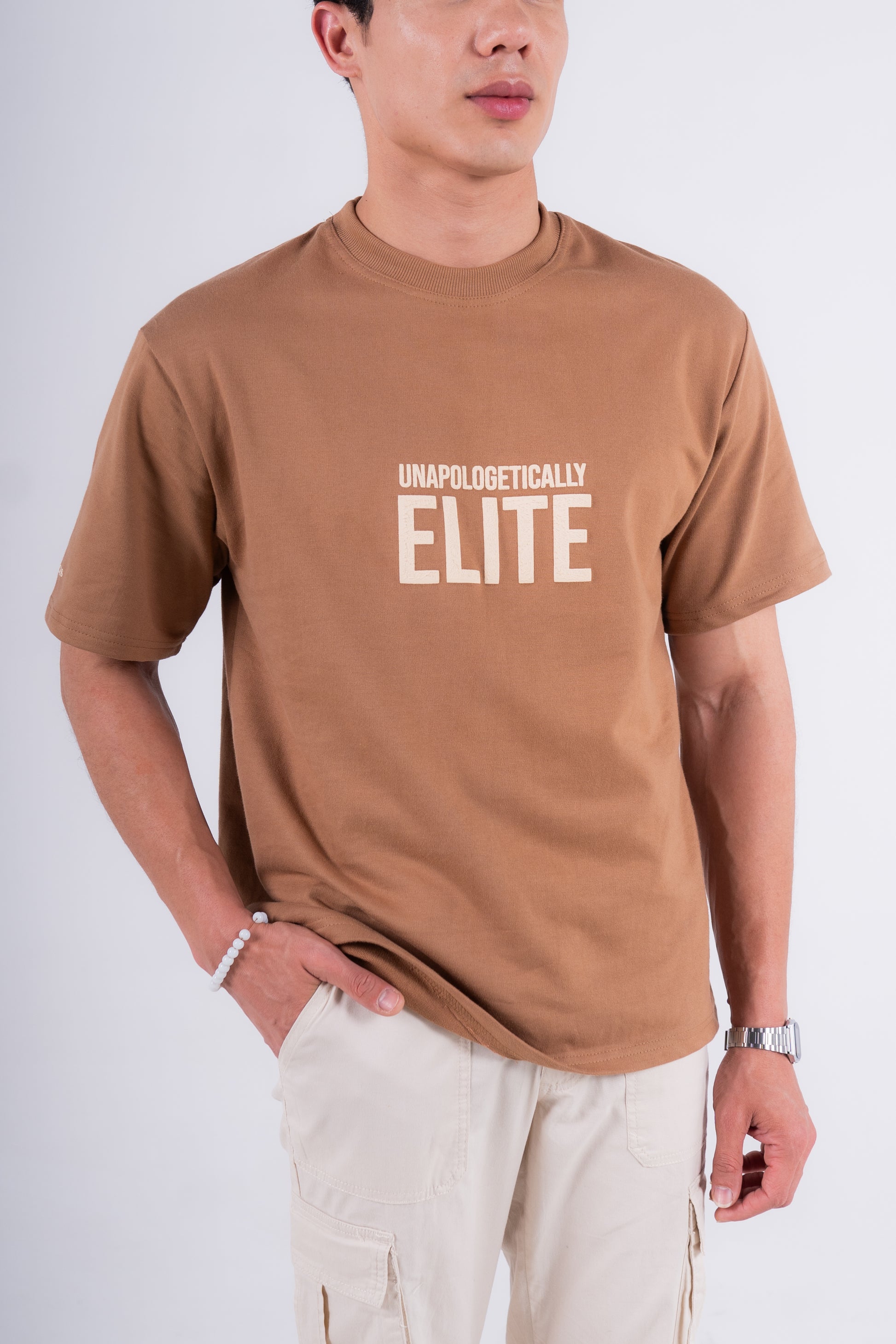 The phrase "Unapologetically Elite" is boldly featured in the screenprint, making a powerful statement of confidence and distinction.