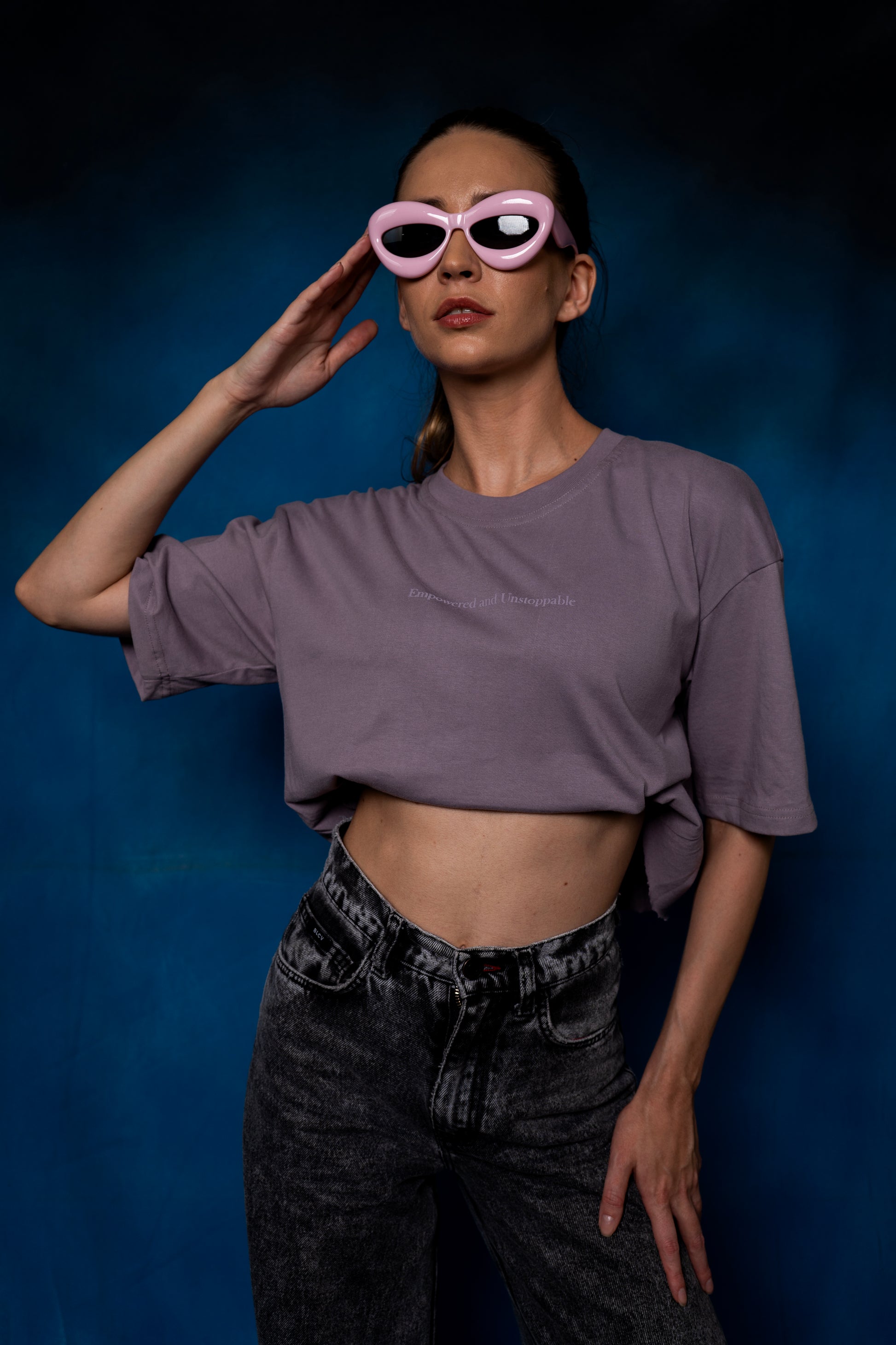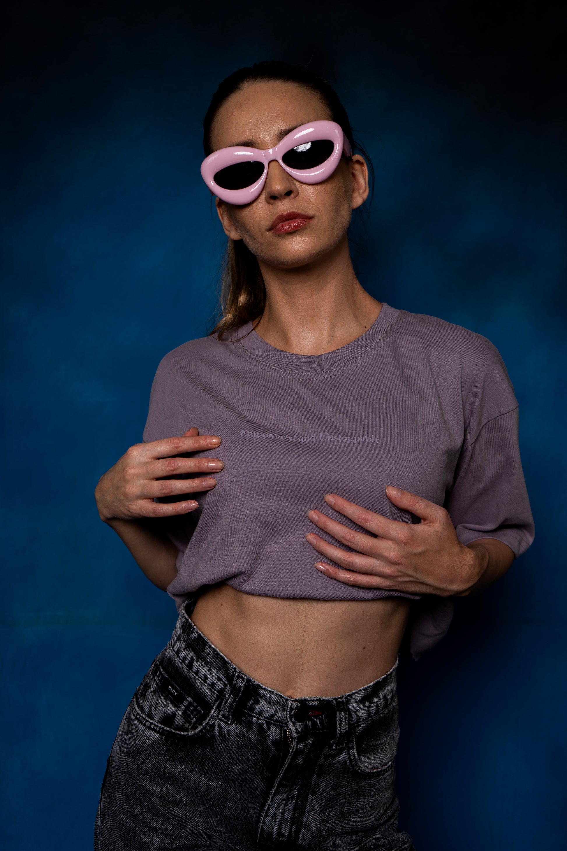 Introducing the Lavender Haze Crop Tee from Caracals! This stunning lavender crop T-shirt is the perfect statement piece for any outfit. Lightweight and breezy.