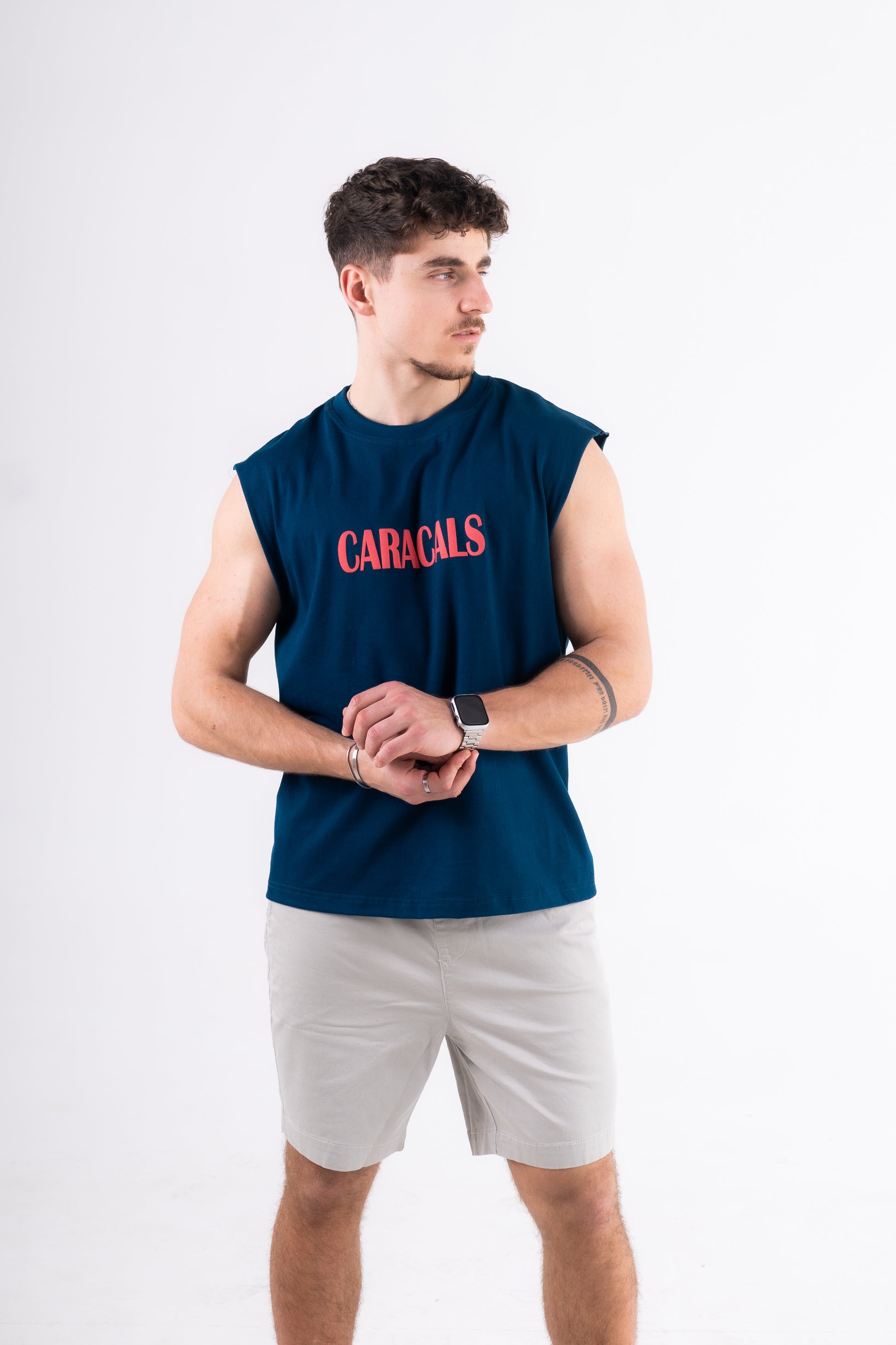 The Sando Half Sleeves in navy blue color feature a bold screen print on both the front and back, offering a striking look with a stylish and comfortable fit.